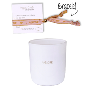 Een heerlijke geurkaars met Silky Tonka geur voor jouw ‘Liefste’. Deze geurkaars komt in een stijlvolle witte pot met de tekst ‘J’adore’. In de mooie giftbox vind je ook een bohemian armbandje met roze en gouddraad J’adore. Het armbandje is verstelbaar middels het goudkleurige kraaltje. Zo kan je dubbel laten zien dat jij haar liefhebt. Maat:…