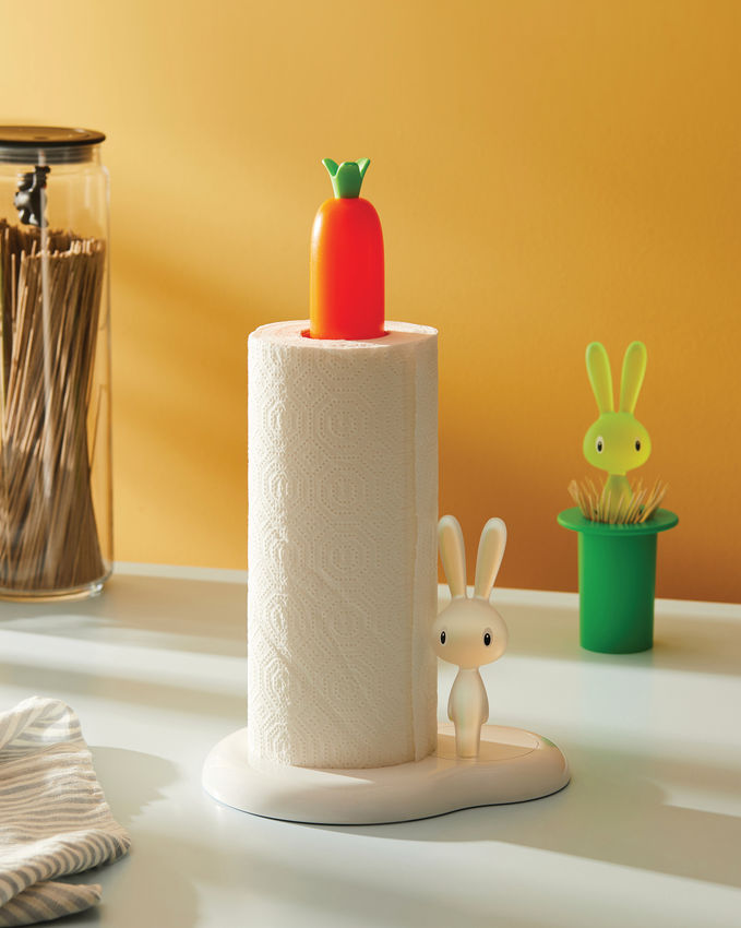 Keukenrolhouder in thermoplastische hars, wit. Konijn & Wortel