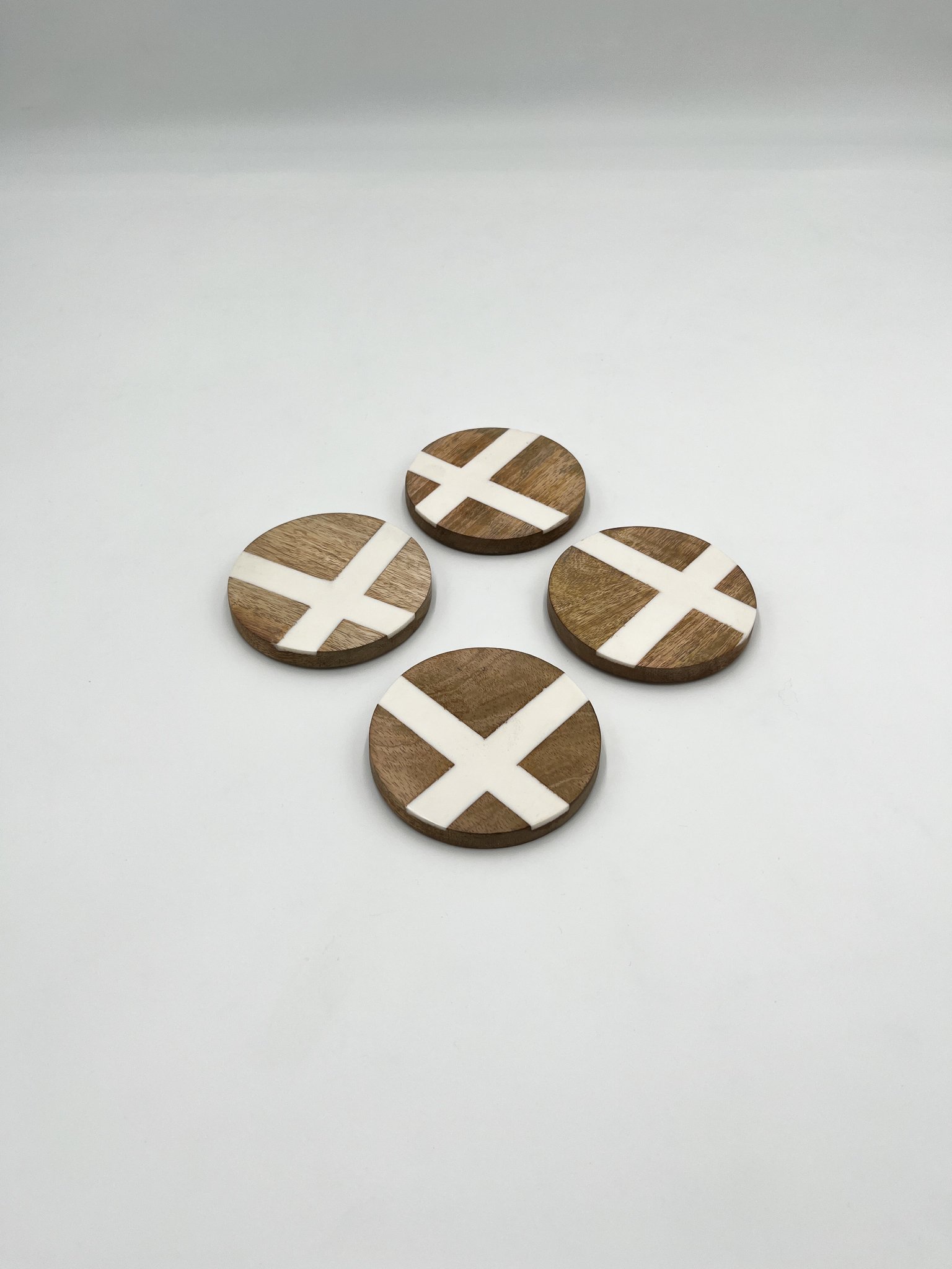 Set of 4 coasters natural cream line