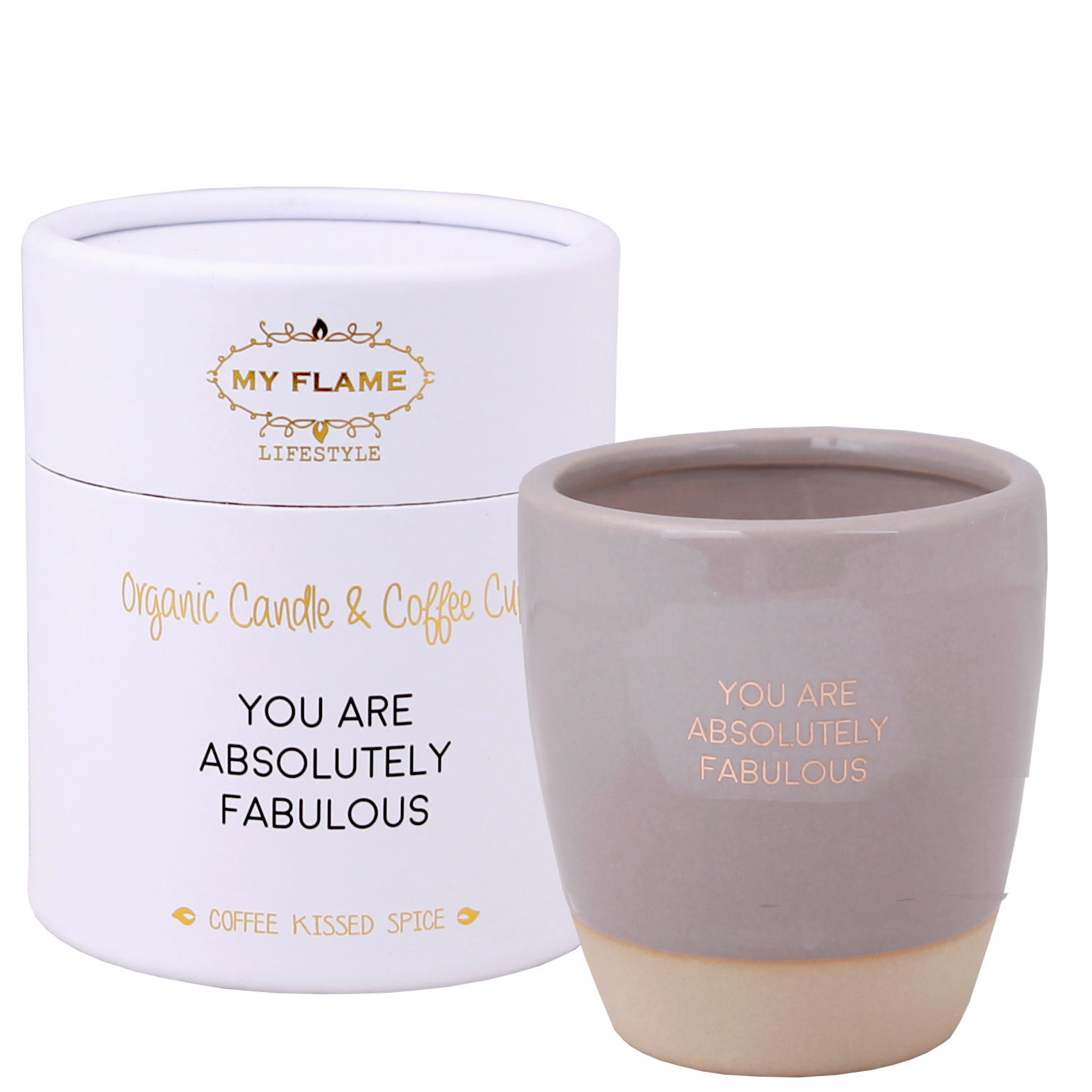 De You Are Absolutely Fabulous geurkaars van My Flame Lifestyle heeft een pastel zandkleur en een warme Coffee Kissed Spice geur die gezelligheid uitstraalt.