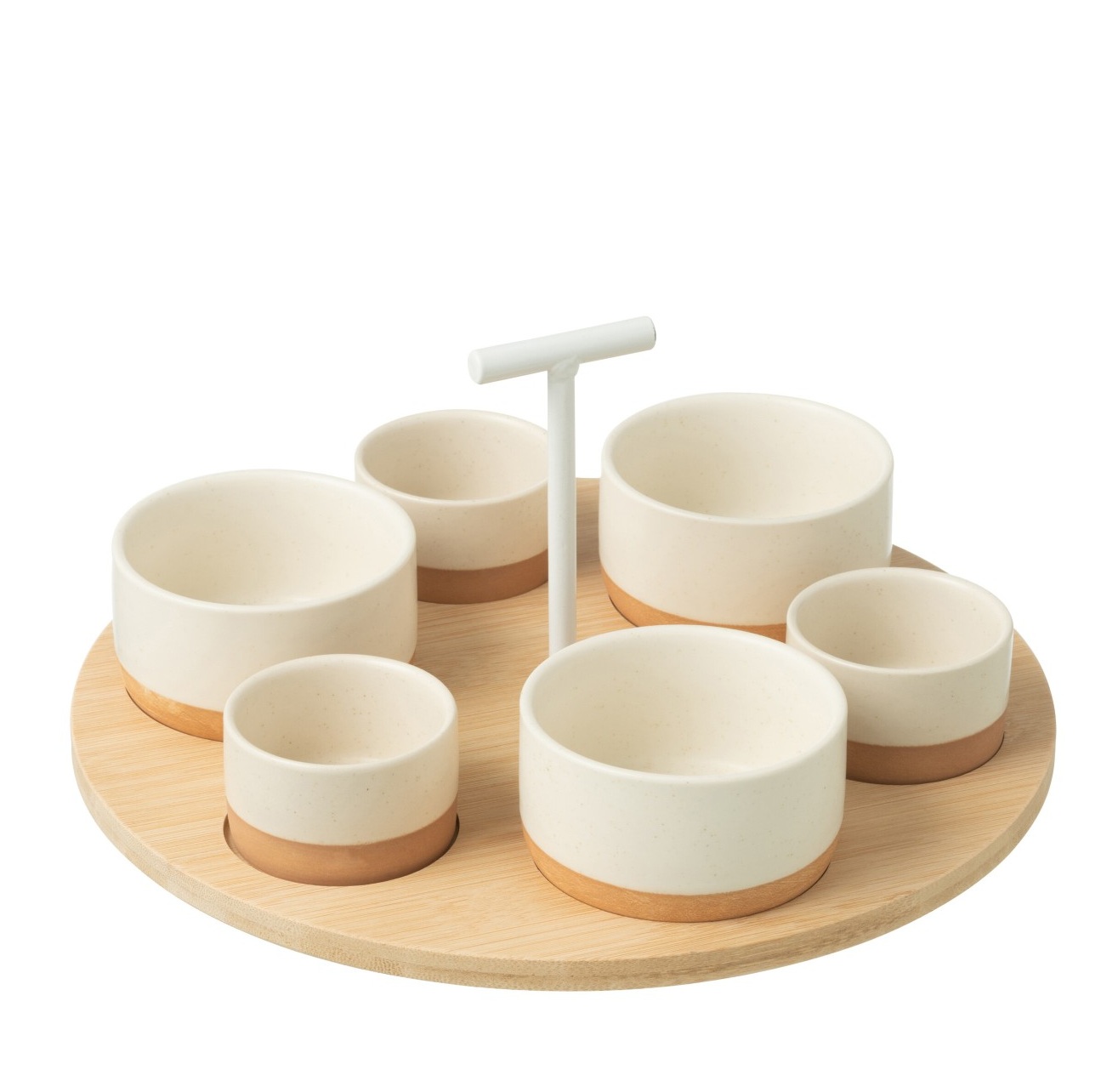 Tapasservies 6 Sets + Bambouschaal In Doos Wit/Naturel (53856)
