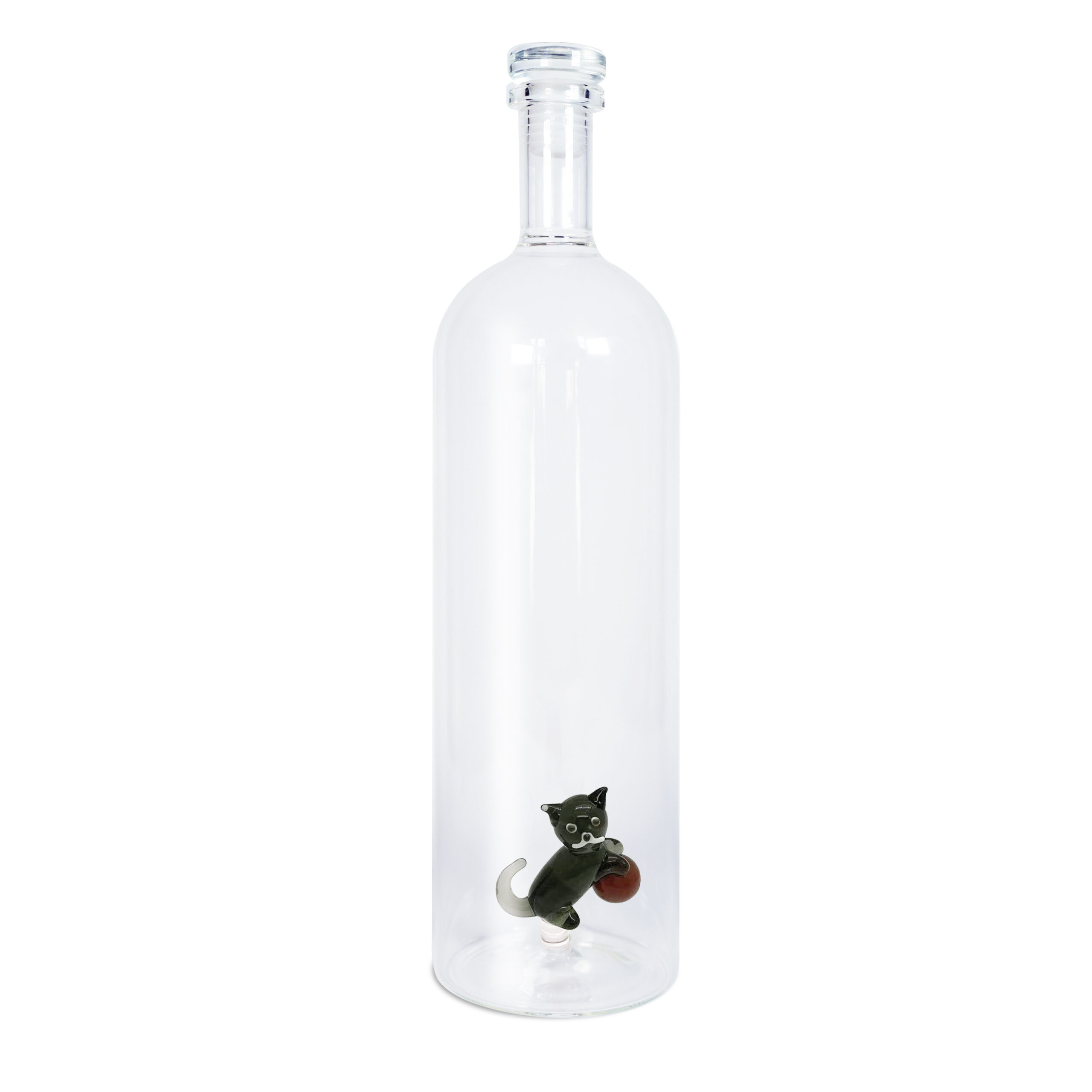 Waterfles met dop en figuurtje kat – Borosilicaatglas 1.2l