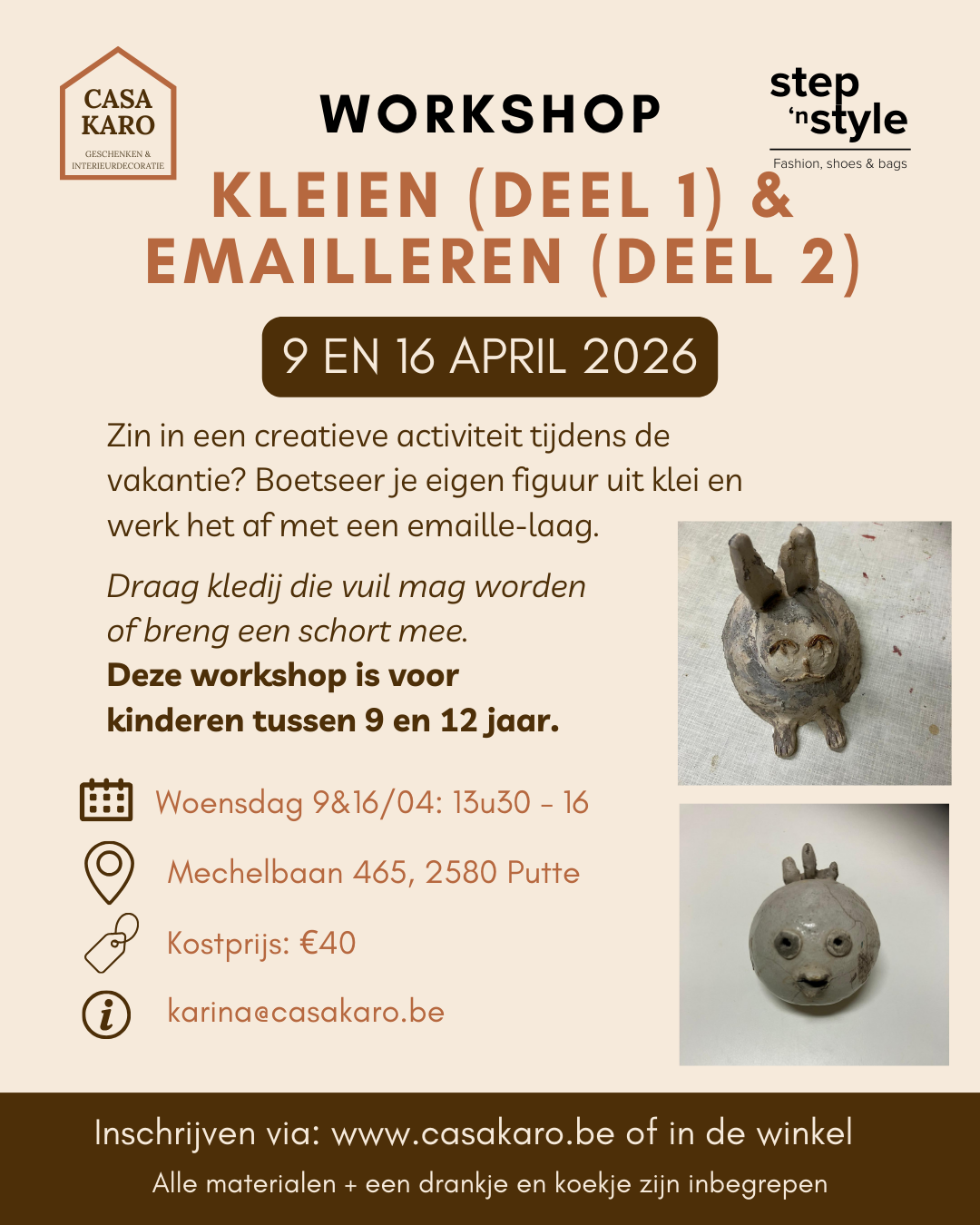 Wat: Zin in een creatieve activiteit tijdens de vakantie ? Boetseer je eigen figuur uit klei en werk het af met een emaille-laag.